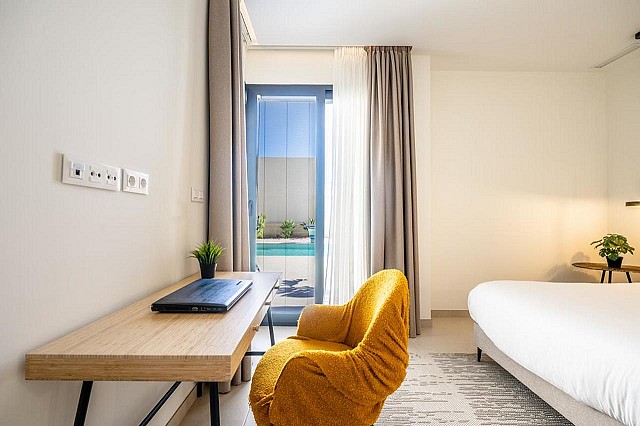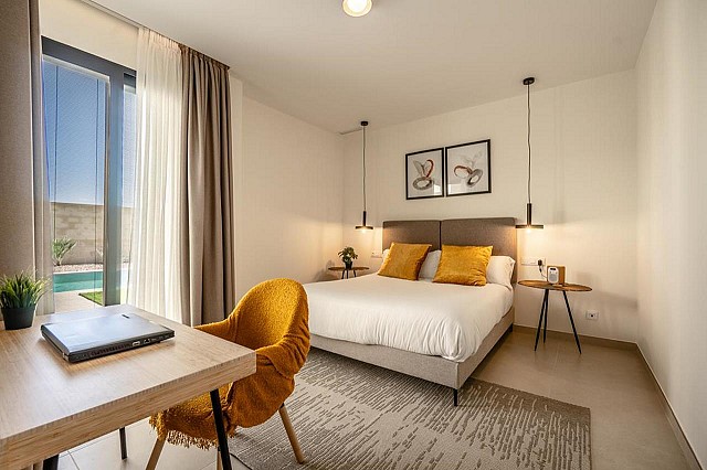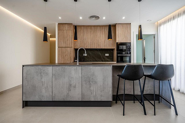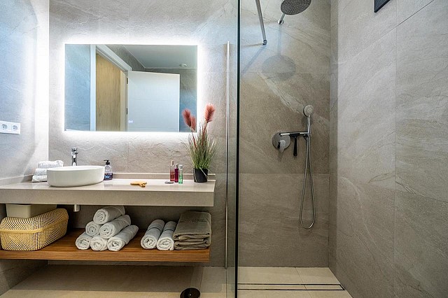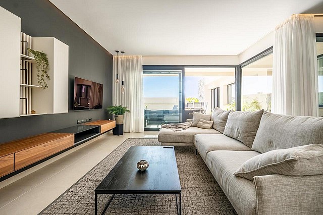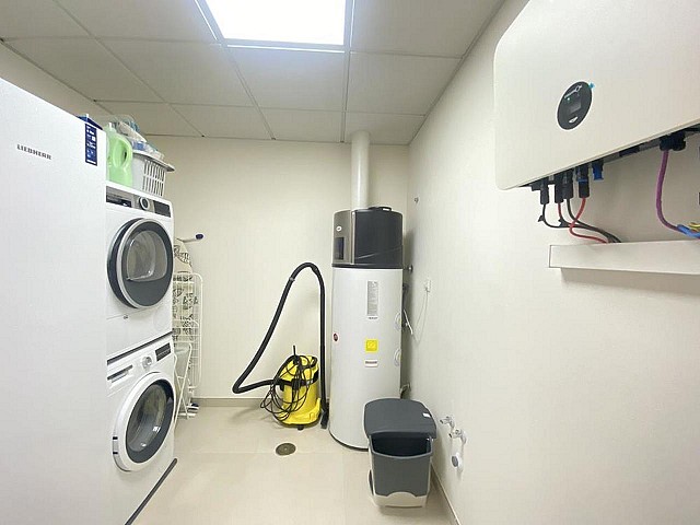 Zwei der Schlafzimmer verfügen über ein eigenes Bad, und alle vier sind mit Einbauschränken ausgestattet. Die Wohnung ist mit einer Fußbodenheizung, Klimaanlage (warm und kalt) in jedem Zimmer, hochwertiger Doppelverglasung und Verdunkelungsvorhängen ausgestattet, die für absolute Dunkelheit sorgen. Zu den Extras gehören ein Druckwassersystem, eine Ladestation für Elektroautos und eine geschmackvolle Teilmöblierung.