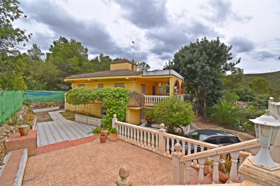 El antiguo chalet de la pareja está en una pequeña comunidad de no más de 20 propiedades rodeada por el bonito campo del interior de Valencia. En un lugar tranquilo con vistas a las montañas, los servicios están a sólo 10 minutos en coche, en Real de Montroi o en Dos Aguas en la otra dirección. En el interior, la propiedad de dos plantas incluye una cocina-comedor, dos salones, cuatro dormitorios (cinco cuando la compraron), dos baños y tres terrazas en la planta superior. El espacio exterior cuenta con piscina, huerto y olivar, cocina exterior, garaje y aparcamiento.